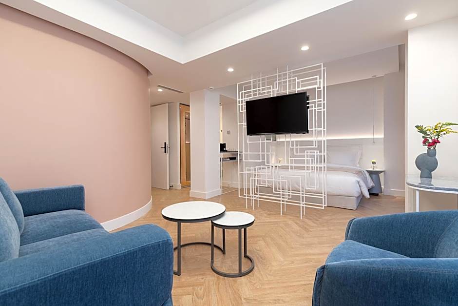 Οι επιλογές δωματίων κυμαίνονται από Comfort με θέα στην πόλη έως σουίτες με θέα στην Ακρόπολη, προσφέροντας χώρο και στυλ για διαφορετικές ομάδες. Η Deluxe Suite με θέα στην Ακρόπολη καλύπτει 355 τετραγωνικά πόδια και φιλοξενεί 2 ενήλικες και 1 παιδί, με έναν καναπέ-κρεβάτι και ένα κρεβάτι king-size. Άλλες ελκυστικές επιλογές περιλαμβάνουν τα δίκλινα Superior με θέα στην Ακρόπολη και Premium με θέα στην Ακρόπολη, καθώς και την Urban Suite με καναπέ-κρεβάτι και κρεβάτι king, και το Quadruple Room με πανοραμική θέα για όσους αναζητούν εκτεταμένες πανοραμικές όψεις.